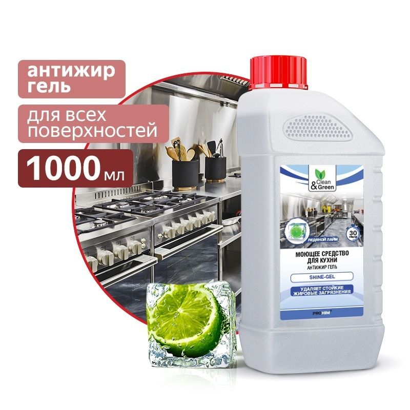 Средство для кухни антижир 1л гель Shine-Gel Clean&Green 1/8 купить в Набережных Челнах по низкой цене оптом и дешево с доставкой
