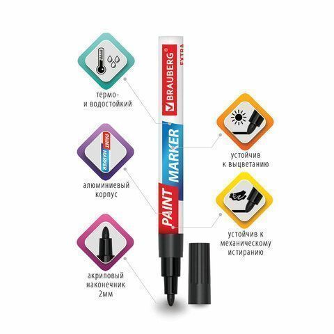 Маркер-краска лаковый черный 2мм нитро-основа алюм корпус BRAUBERG EXTRA 1/12/864 купить оптом и в розницу в Набережных Челнах