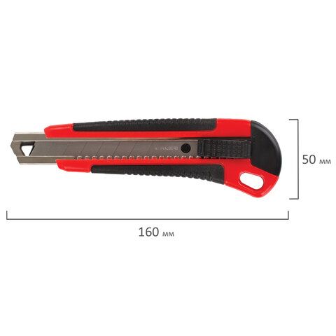 —Нож канцелярский 18мм автофиксатор с резиновой вставкой+3лезв, блистер Brauberg 1/12/144