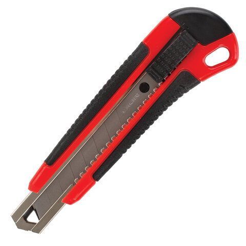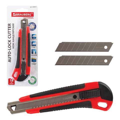 Нож канцелярский 18мм автофиксатор с резиновой вставкой+3лезв, блистер Brauberg 1/12/144 купить оптом и в розницу в Набережных Челнах