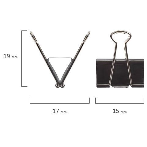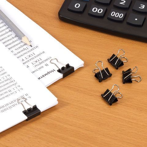 Зажимы для бумаг 15мм на 45л (12шт) черные в картонной коробке Brauberg 1/12 купить оптом и в розницу в Набережных Челнах