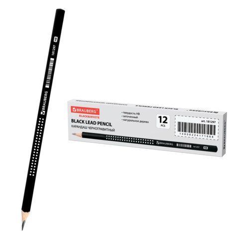 Карандаш ч/гр HB трехгранный, черный с рисунком, без резинки BRAUBERG Black&White 1/12/144 купить оптом и в розницу в Набережных Челнах