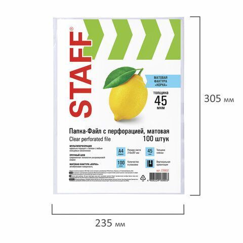 Перфофайлы А4 45 мкм апельсиновая корка STAFF 100шт 1/30