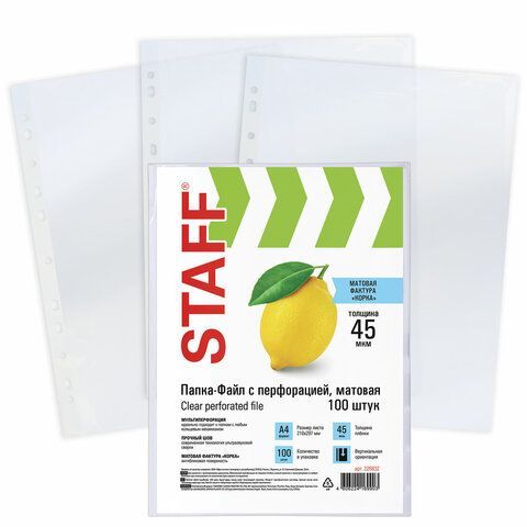 Перфофайлы А4 45 мкм апельсиновая корка STAFF 100шт 1/30 купить оптом и в розницу в Набережных Челнах