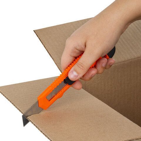 Нож канцелярский 18мм с фиксатором упаковка с европодвесом Staff 1/24/576 купить оптом и в розницу в Набережных Челнах