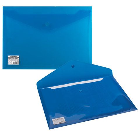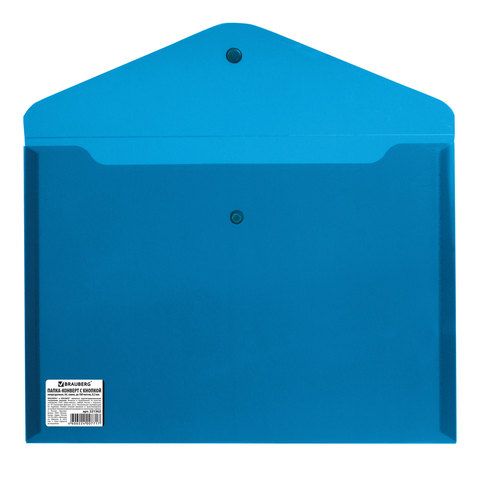 —Папка-конверт с кнопкой А4 BRAUBERG непрозрачная синяя до 100л 0,18мм 1/10/480
