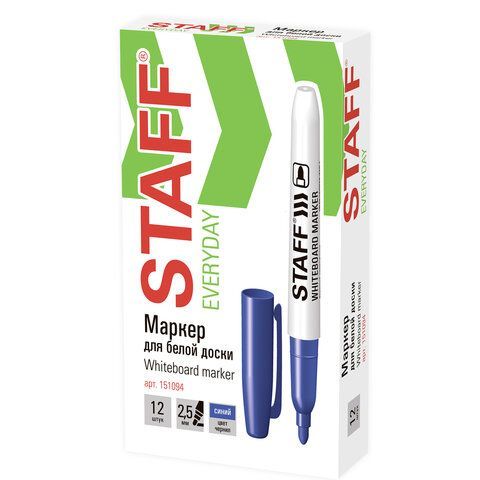 Маркер для доски синий 2,5мм тонкий корпус круглый наконечник STAFF 1/12 купить оптом и в розницу в Набережных Челнах