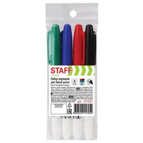 Маркер для доски НАБОР 4шт 2-5мм тонкий корпус круглый наконечник STAFF 1/36/288 купить оптом и в розницу в Набережных Челнах