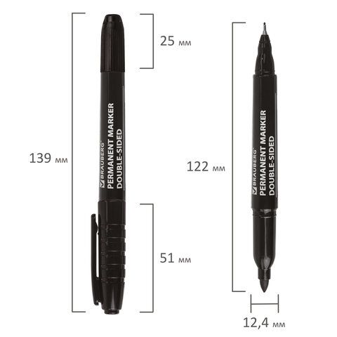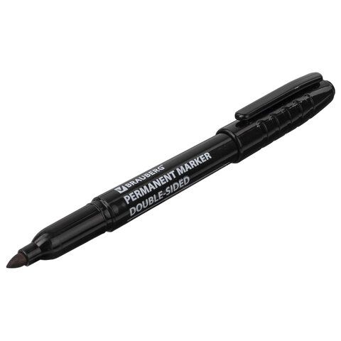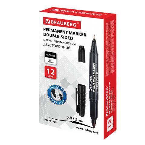 Маркер перманентный черный 0,8/3мм двусторонний наконечники Double BRAUBERG 1/12 купить оптом и в розницу в Набережных Челнах