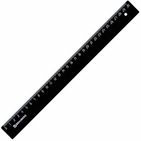 —Линейка 30см пластиковая непрозрачная черная BRAUBERG 1/20/100