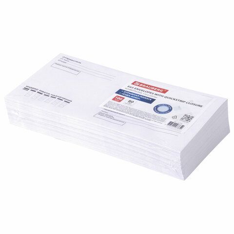 Конверты Е65 110х220мм отрывная полоса STRIP Куда-Кому внутр.запечатка BRAUBERG 100/1000 оптом и в розницу в Набережных Челнах купить