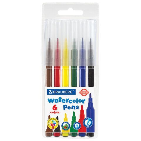 Фломастеры 06цв классические, вент. колпачек, европодвес BRAUBERG PREMIUM 1/48 купить оптом и в розницу в Набережных Челнах