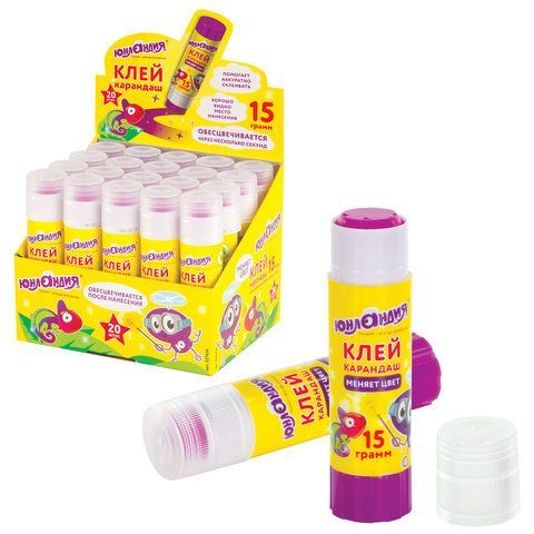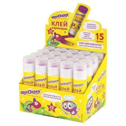 Клей-карандаш 15г обесцвечивающийся цветной ЮНЛАНДИЯ 1/20/480 купить оптом и в розницу в Набережных Челнах