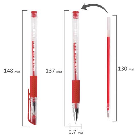 Ручка гелевая красная 0,5мм резиновый держатель STAFF 1/12/1728 купить оптом и в розницу в Набережных Челнах