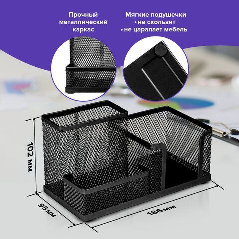 Подставка-органайзер BRAUBERG Germanium метал 3 секции 102х186х95мм черная 1/1 купить оптом и в розницу в Набережных Челнах