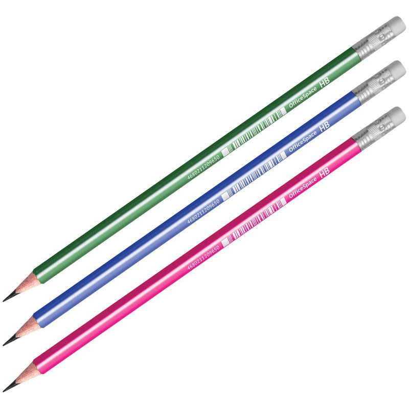 Карандаш ч/гр HB с ластиком, трехгранный, пластик, заточен, ассорти OfficeSpace 1/12/72 купить оптом и в розницу в Набережных Челнах