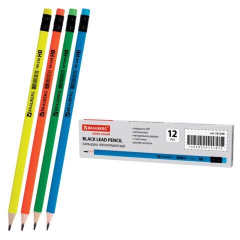 Карандаш ч/гр HB с ластиком трехгранный корпус неон ассорти Brauberg 1/12/2880 купить оптом и в розницу в Набережных Челнах