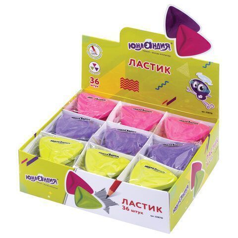 Ластик 52х50х15 мм ЮНЛАНДИЯ "Звездочка", цвет ассорти, 228710 1/36 купить оптом и в розницу в Набережных Челнах