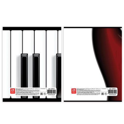 Тетрадь для нот А4, 24л., BRAUBERG обл.мел.карт., вертикальная, Музыка (2 вида), 125417