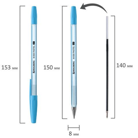 —Ручка шариковая синяя узел 0,7мм корпус ассорти BRAUBERG M-500 PASTEL 1/50