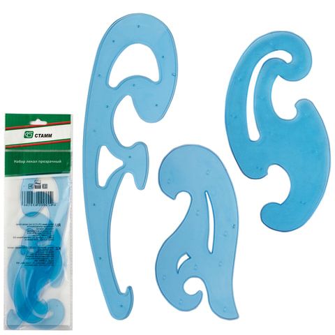 Лекало НАБОР 3 шт. , 25см, 17см ,12см, прозрачный, тонированный, европодвес, ЛК01
