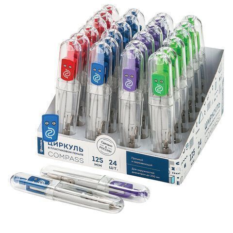—Циркуль 125мм для средних классов GLOBUS металлический, цвет ассорти, чехол ПВХ 1/24/48