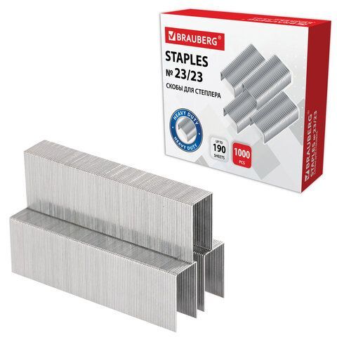 Скобы №23/23 1000шт СВЕРХПРОЧНЫЕ от 110 до 190л BRAUBERG 1/10/80