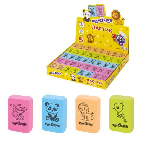 Ластик ЮНЛАНДИЯ Зверушки 28х18х10мм купить оптом и в розницу в Набережных Челнах