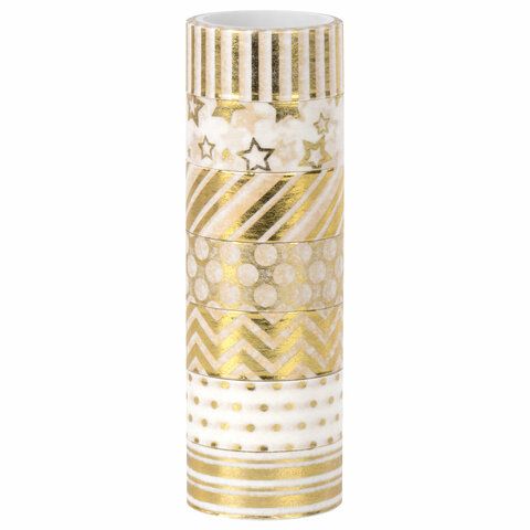 Клейкие Washi-ленты 7шт 3м ЗОЛОТИСТЫЕ с фольгой оптом и в розницу в Набережных Челнах купить