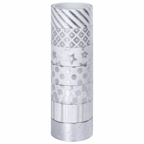 Клейкие Washi-ленты 7шт 3м СЕРЕБРИСТЫЕ с фольгой оптом и в розницу в Набережных Челнах купить
