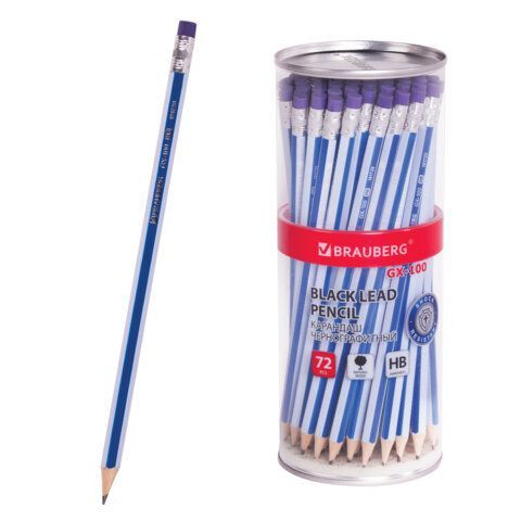 Карандаш ч/гр HB с ластиком дерево корпус синий GX-100 BRAUBERG 1/72 купить оптом и в розницу в Набережных Челнах