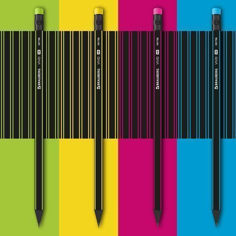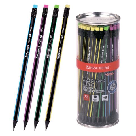 Карандаш ч/гр BRAUBERG "VIVID", 1 шт., HB, с ластиком, корпус ассорти 1/72 купить оптом и в розницу в Набережных Челнах
