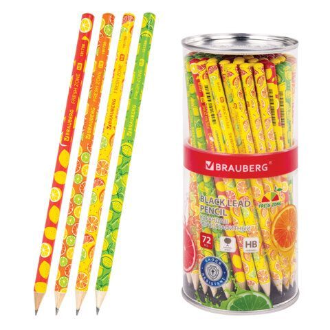 Карандаш ч/гр НВ дерево корпус ассорти FRESH ZONE BRAUBERG 1/72 купить оптом и в розницу в Набережных Челнах