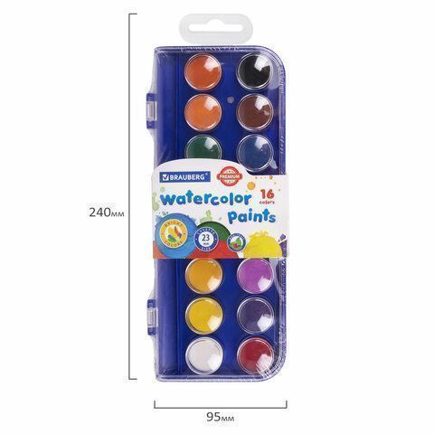 —Краски акварельные 16цв круглые кюветы 23 мм пенал BRAUBERG PREMIUM 12/144