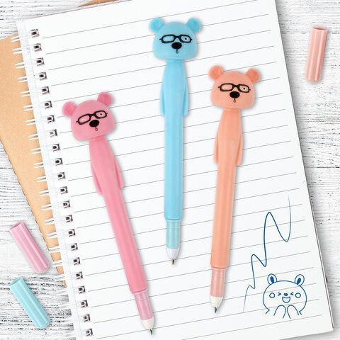 Ручка фигурная МИШКА мягкий корпус 0,35мм, синяя купить оптом и в розницу в Набережных Челнах