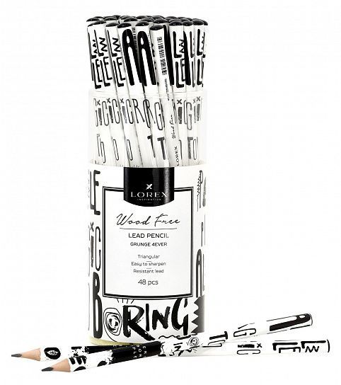 Карандаш ч/гр НВ заточенный трехгранный пластик LOREХ WOOD FREE GRUNGE 4EVER 1/48 купить оптом и в розницу в Набережных Челнах