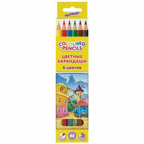 Карандаши цветные 06цв пластиковые, классические, грифель мягкий 3 мм ЮНЛАНДИЯ Домики 1/24 купить оптом и в розницу в Набережных Челнах