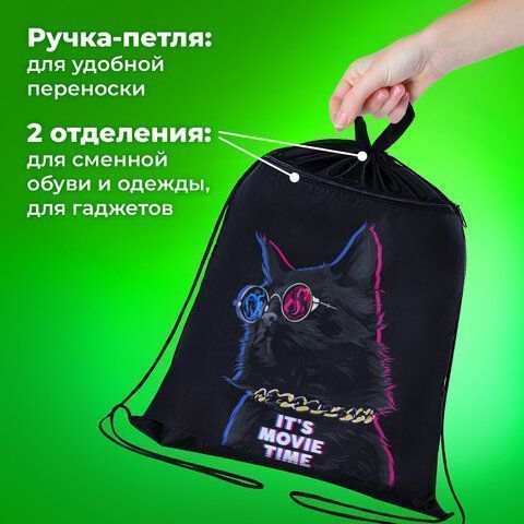 Мешок для обуви 47х37см с петлей карман на молнии Movie time BRAUBERG купить оптом и в розницу в Набережных Челнах