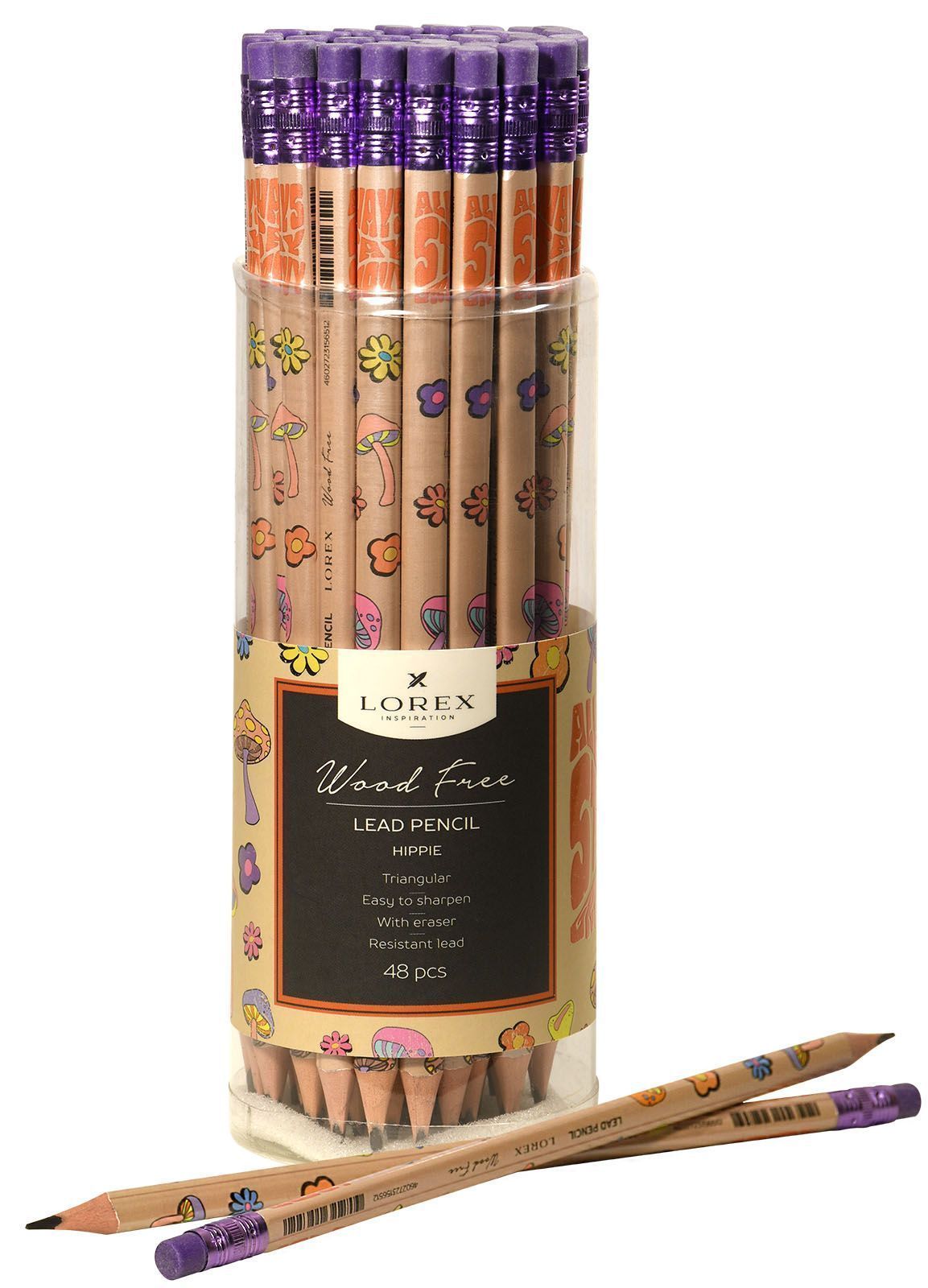 Карандаш ч/гр НВ заточенный трехгранный LOREX WOOD FREE HIPPIE 1/48/576 купить оптом и в розницу в Набережных Челнах