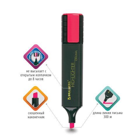 Текстмаркер розовый 1-5 мм скошенный наконечник BRAUBERG ORIGINAL 1/12/576 купить оптом и в розницу в Набережных Челнах