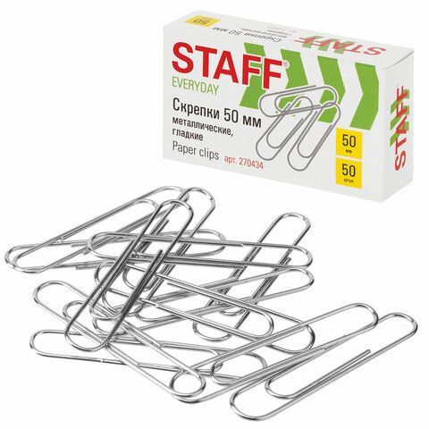 Скрепки 50мм 100шт металлические STAFF EVERYDAY 1/8/80 купить оптом и в розницу в Набережных Челнах