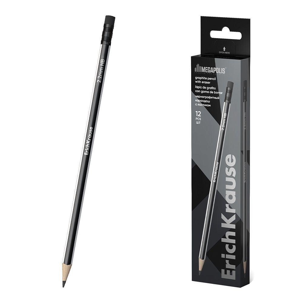 Карандаш ч/гр HB пластик с ластиком ErichKrause MEGAPOLIS 1/12 купить оптом и в розницу в Набережных Челнах