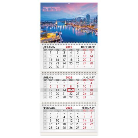 Календарь квартальный 2026 3 блока на 3-х гребнях с бегунком Город BRAUBERG 1/40 оптом и в розницу в Набережных Челнах купить