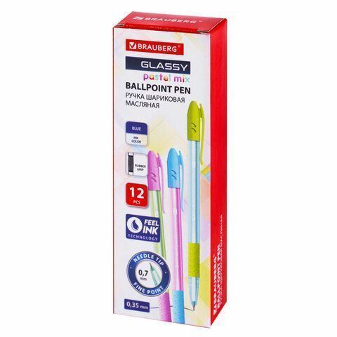 Ручка шариковая синяя масляная ассорти BRAUBERG GLASSY 1/12 купить оптом и в розницу в Набережных Челнах