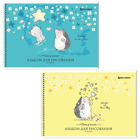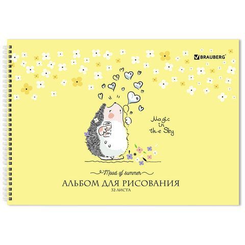 Альбом для рисования А4 32л гребень обложка картон BRAUBERG Ежики 1/6/30