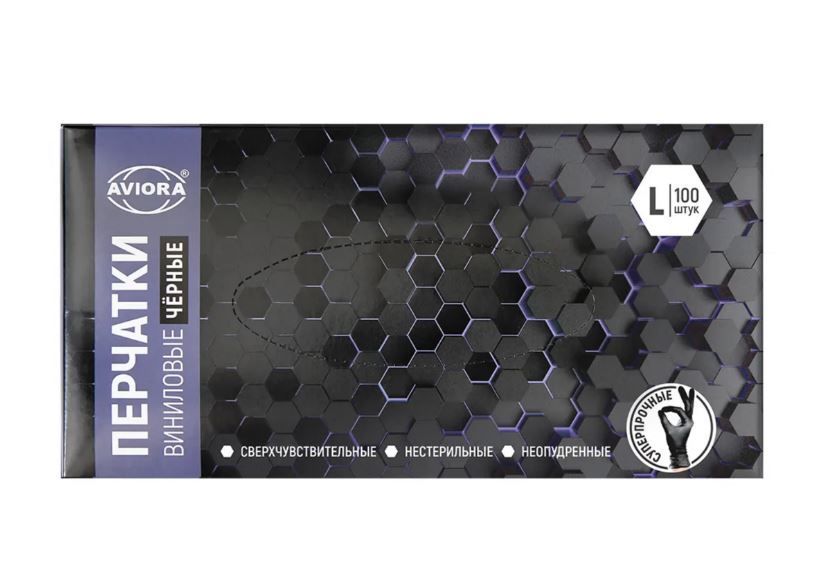—Перчатки смотровые виниловые неопудренные Aviora черные L 4,5гр 50/500