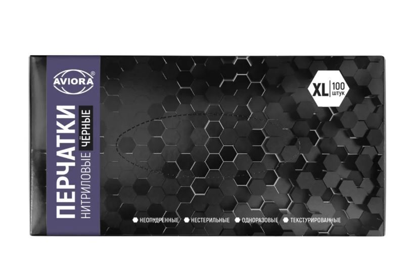 Перчатки смотровые нитриловые неопудренные Aviora черные XL 4 гр 50/500 купить оптом и в розницу в Набережных Челнах с доставкой
