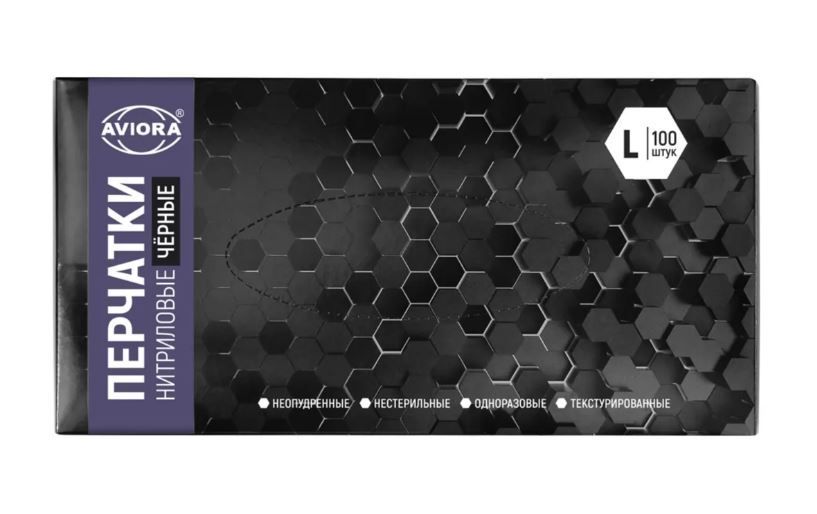 —Перчатки смотровые нитриловые неопудренные Aviora черные L 4гр 50/500