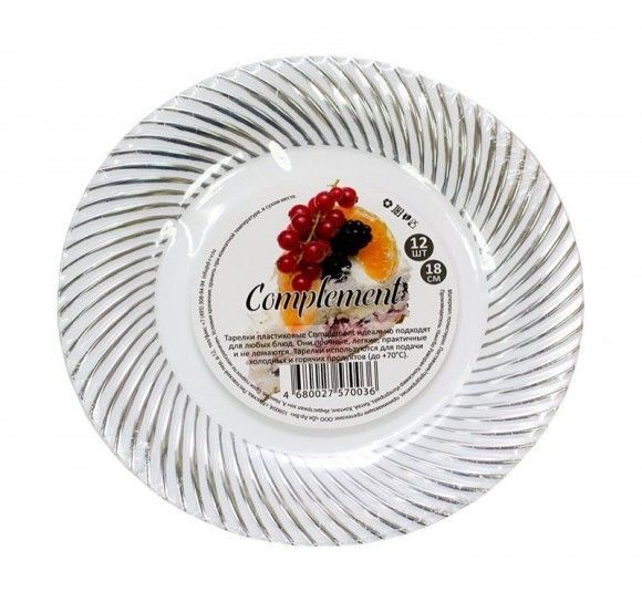 Тарелка пластиковая d-180 белая с серебряной волной Complement ламинированная (12шт) 1/20 купить в Набережных Челнах с доставкой - УПАК.РФ