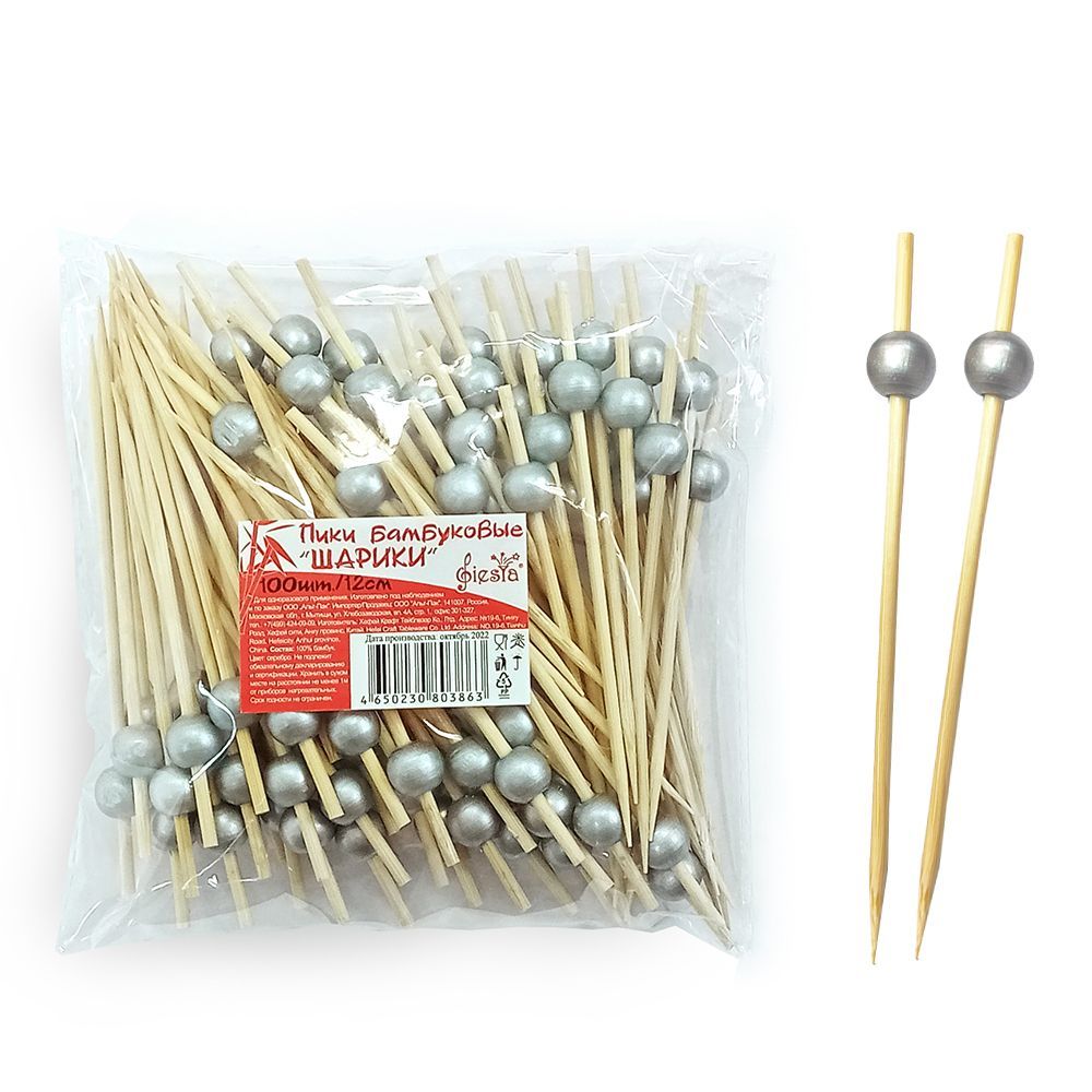 Пика для канапе Шарики серебро 12см (100шт) 1/50 купить в Набережных Челнах с доставкой - УПАК.РФ